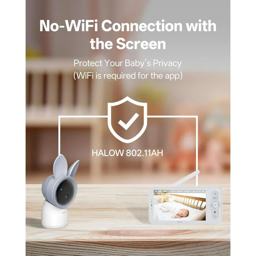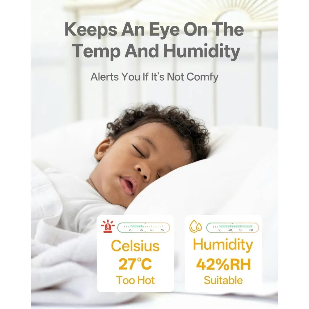 High-Resolution & Enhanced Night Vision: Equipped with a 5-inch 720p color LCD screen and 4x digital zoom, the monitor delivers images with 10× more detail than standard 240p monitors. When you’re out, the free mobile app streams 2K video, allowing you to see your baby’s every delicate movement clearly—even in low light.