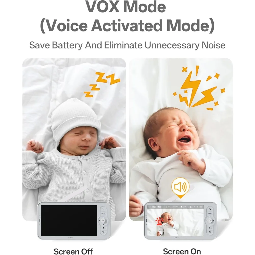 Upgraded Protection & Caring: This dual-camera monitor enhances safety with cry & sound detection, motion & danger zone alerts, auto-tracking, temperature & humidity monitoring, and feeding reminders. Advanced FHSS encryption ensures your privacy, while browsing record control and user connection management guarantee only authorized users can view the feed.