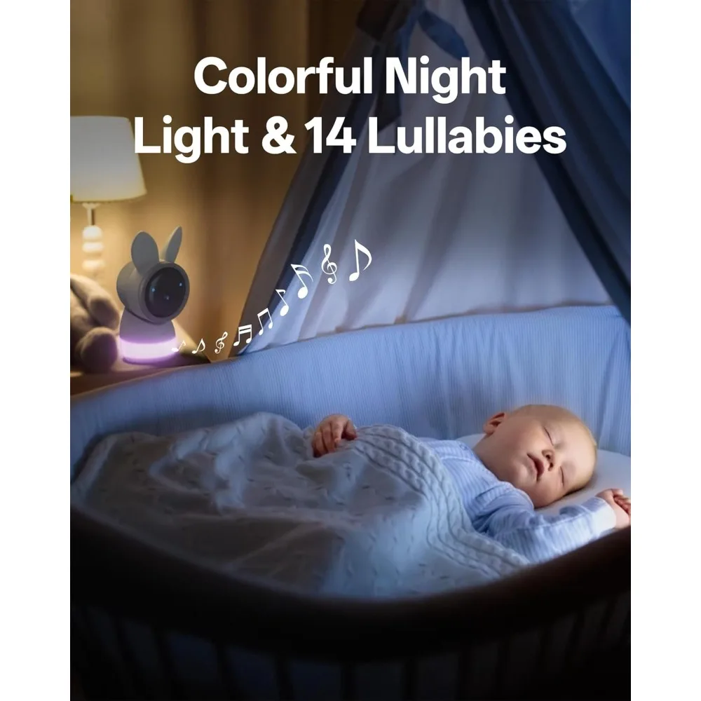 Clear Two-Way Audio & Smart Features: Built-in microphone and speaker allow seamless communication with your baby or pets anytime. Play soothing sounds or lullabies remotely. The monitor also supports volume control, nursing reminders, and click-to-call functionality. Manage multiple cameras in one app, and safely share access with family or friends, with the ability to revoke sharing at any time.
