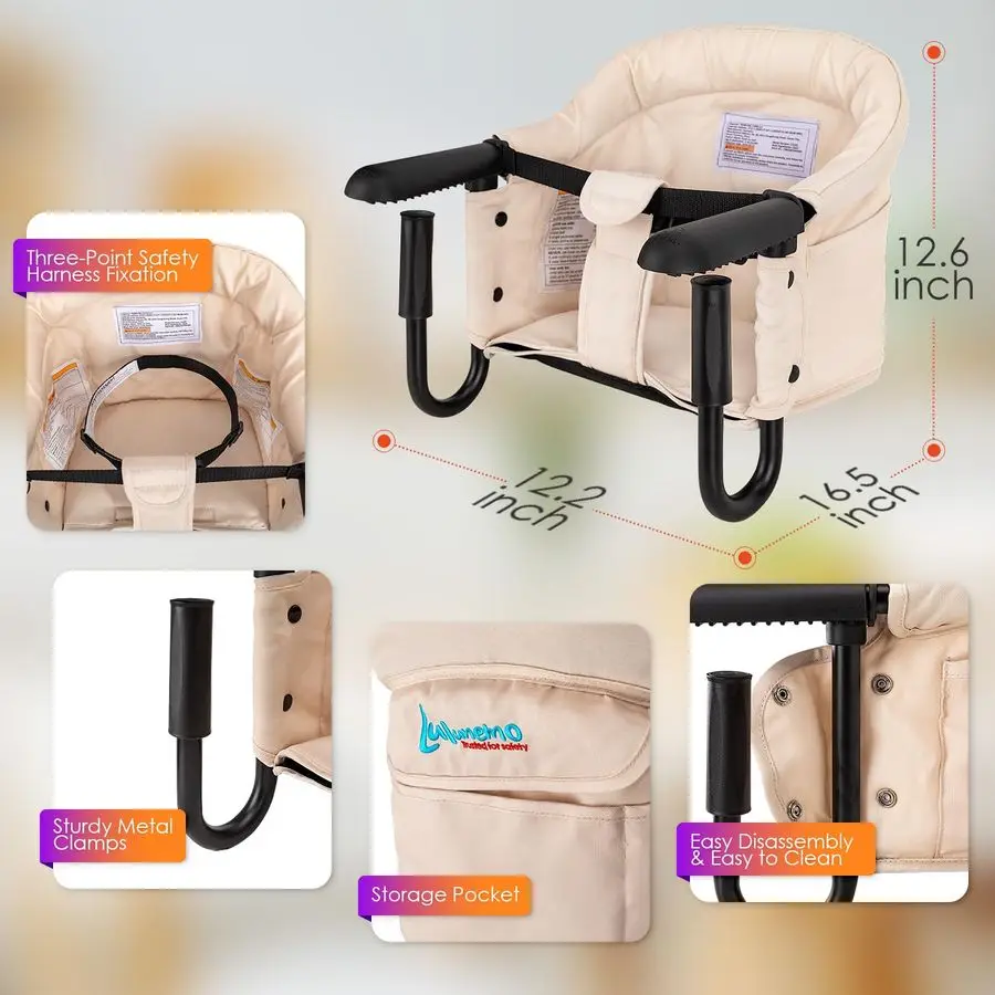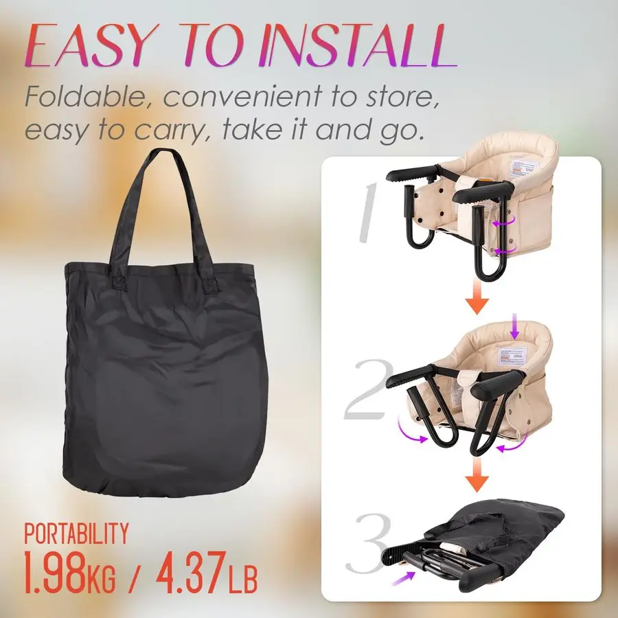 Designed with a convenient collapsible structure, this hook-on high chair is easy to store and transport. It folds neatly to fit into a handbag, closet, or car without taking up much space. After use, it can be stored away or hung on the wall. Simple assembly instructions allow setup in just a few minutes—perfect for travel and daily use.