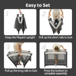 This portable playard features a detachable bassinet that removes easily for compact folding and space-saving storage. The included carry bag makes transport effortless, fitting neatly into car trunks or small living spaces—perfect for travel or everyday home use.